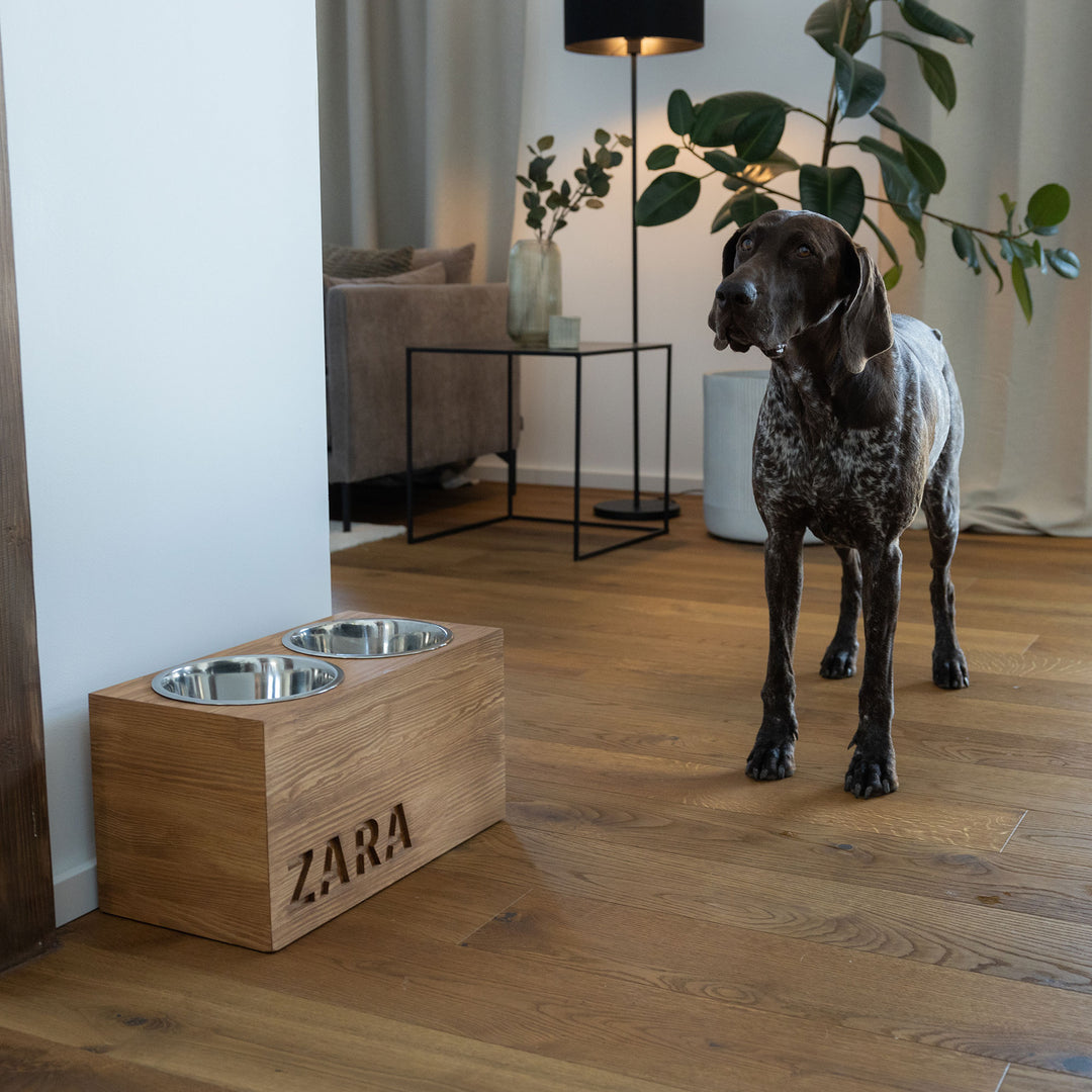 Verleihen Sie der Futterstation eine persönliche Note mit der Namensgravur für Ihr Haustier. Jede Gravur macht die Station zu einem einzigartigen Stück, das speziell für Ihren vierbeinigen Freund gefertigt wurde. Diese besondere Personalisierung sorgt nicht nur für einen individuellen Touch, sondern zeigt auch, wie sehr Sie Ihr Haustier lieben.
